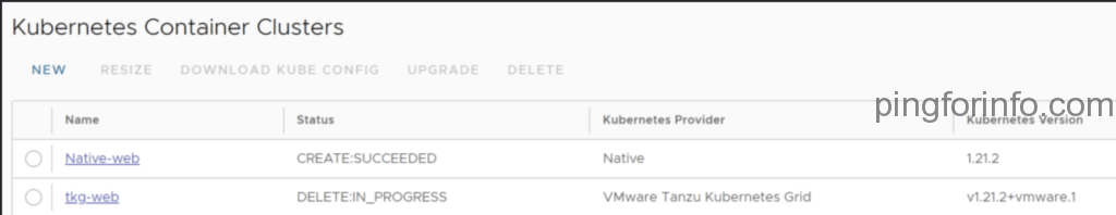 test-tkg-1 CSE-Site1-Test orgadmin CSE-TEST-OVDC TKGm TKGm v1.21.2+vmware.1 DELETE:IN_PROGRESS